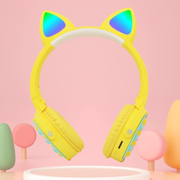 减压耳机儿童玩具耳机,无线蓝牙耳机流行泡泡入耳式耳机减压玩具彩虹色减压耳机适合儿童成人(黄色猫耳款)