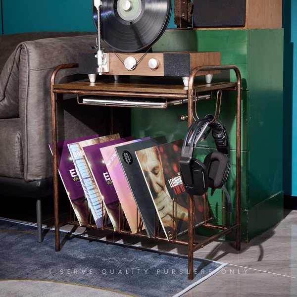 Record player stand with storage. After my long research on the market, record player stand vintage decided to use a combination of brown wood grain and metal bracket, thus highlighting the rustic elements and modern silhouette, the unique industrial retro style design turntable stand suitable for any place in the room, which is a great addition and accent to add some kind of beauty to the space.