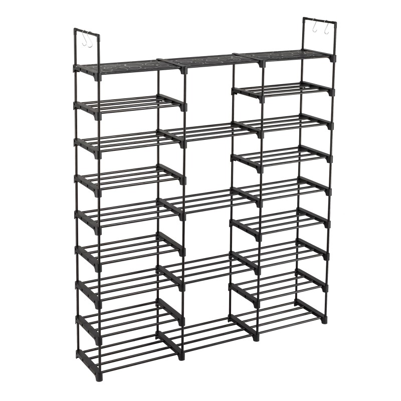 一层四管3排9层带挂钩 可放置50双鞋子 铁管 塑料 127*28*157.5cm 鞋架 黑色 N001