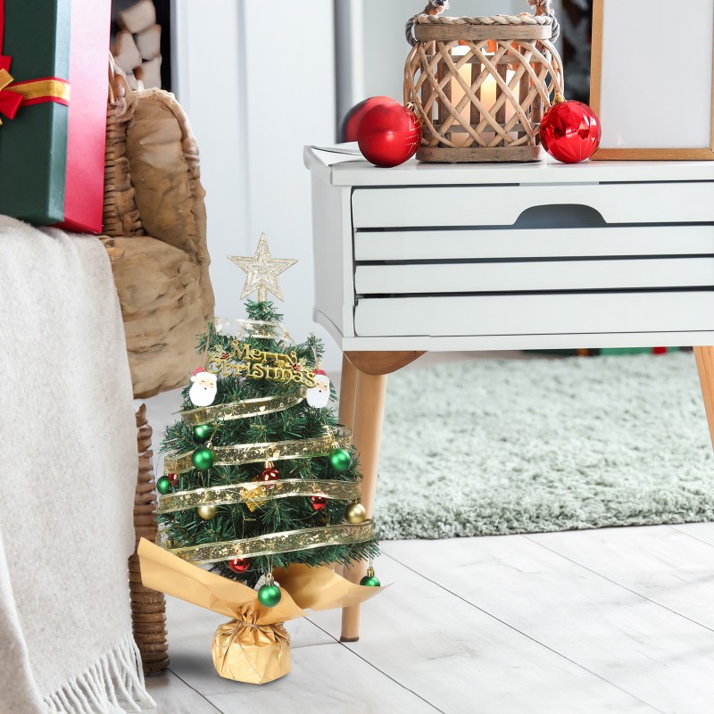 24in 绿色 30灯 暖白3模式 电池盒控制 60枝头 带装饰配件 彩纸底座 PVC材质 圣诞树