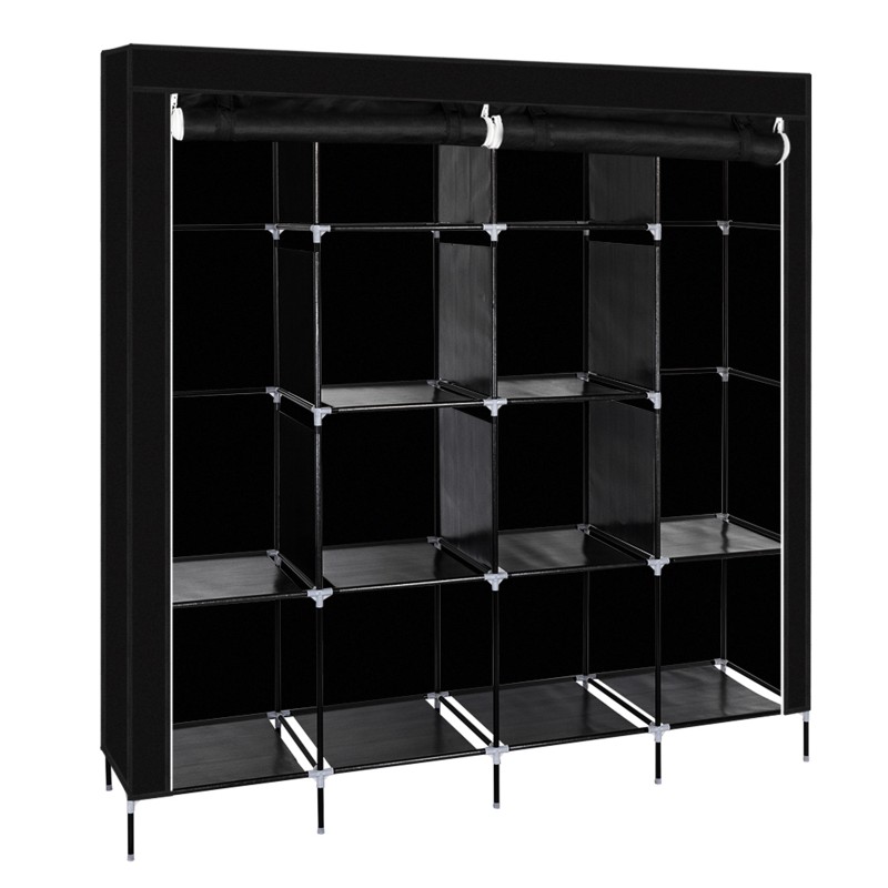 无纺布衣柜4排高底脚带4个侧袋169.5 x 44 x 168.5/181.5cm-黑色