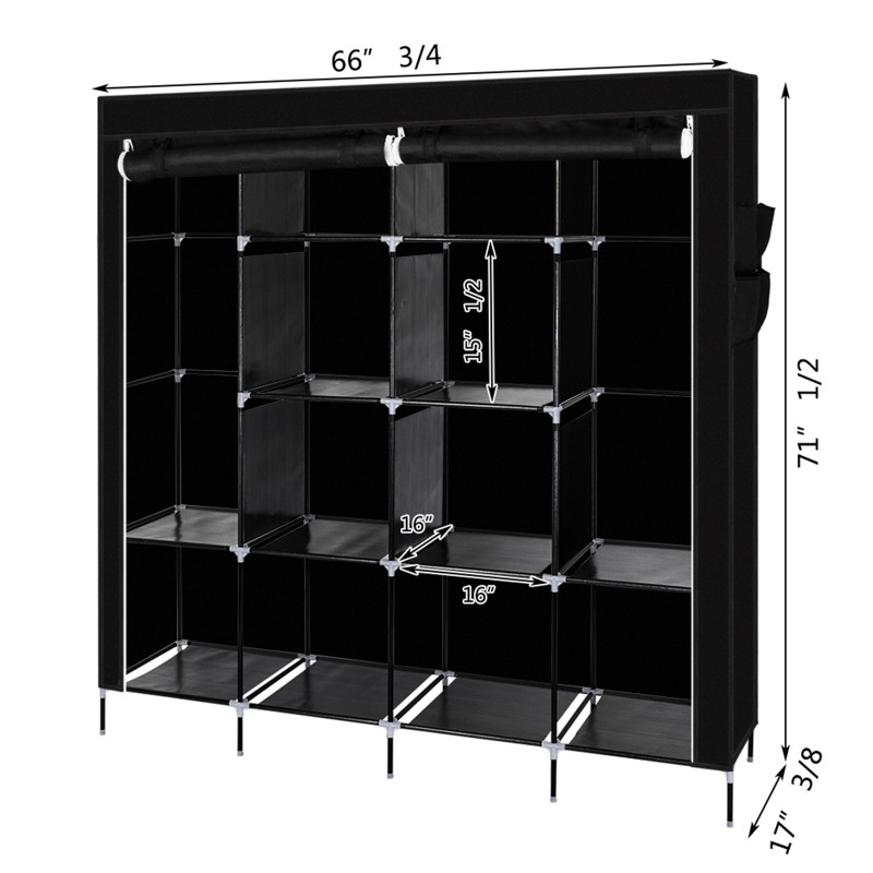 3. 家用衣柜尺寸:66 3/4 英寸 x 17 3/8 英寸 x 66 3/8 英寸 /71 1/2 英寸(含底杆)(169.5 x 44 x 168.5/181.5 厘米)