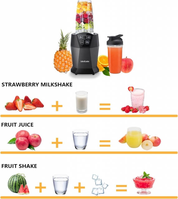 Extreme Motor: Rated 1000 Watts smoothie blender for shakes, 1200-Peak-Watts motor power crushes the hardest ingredients and ice into snow in seconds. You can make frozen drinks, smoothies, sauces, and more with our personal blender.