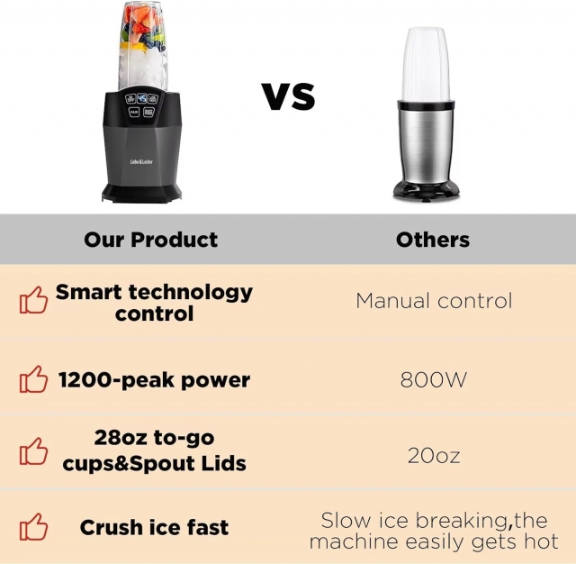 Large Capacity: The cups of electric blender are 28-oz and BPA-FREE. Two cups are good for family use.