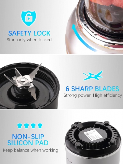 【BPA FREE】: The smoothie maker is with the compact design that fits on any countertop. Easy to control with one button. All parts of the personal blender are BPA free.