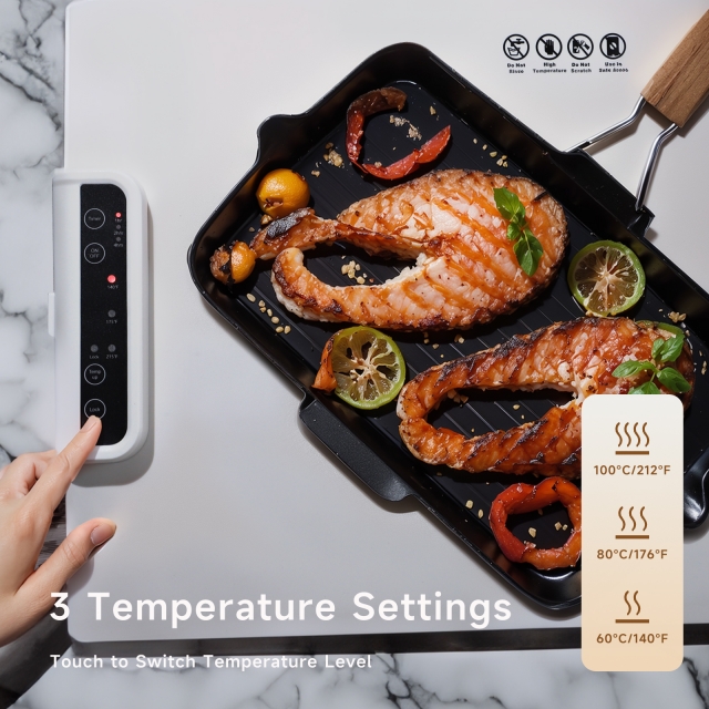 Experience efficient and even heating with our silicone warming plate. This material not only ensures safety and easy cleaning but also excels in heat retention, maintaining the warmth and flavor of your food. Rapid stereo heat transfer technology swiftly achieves the perfect temperature.