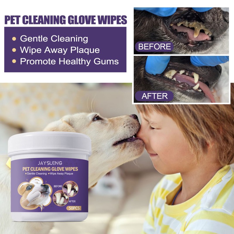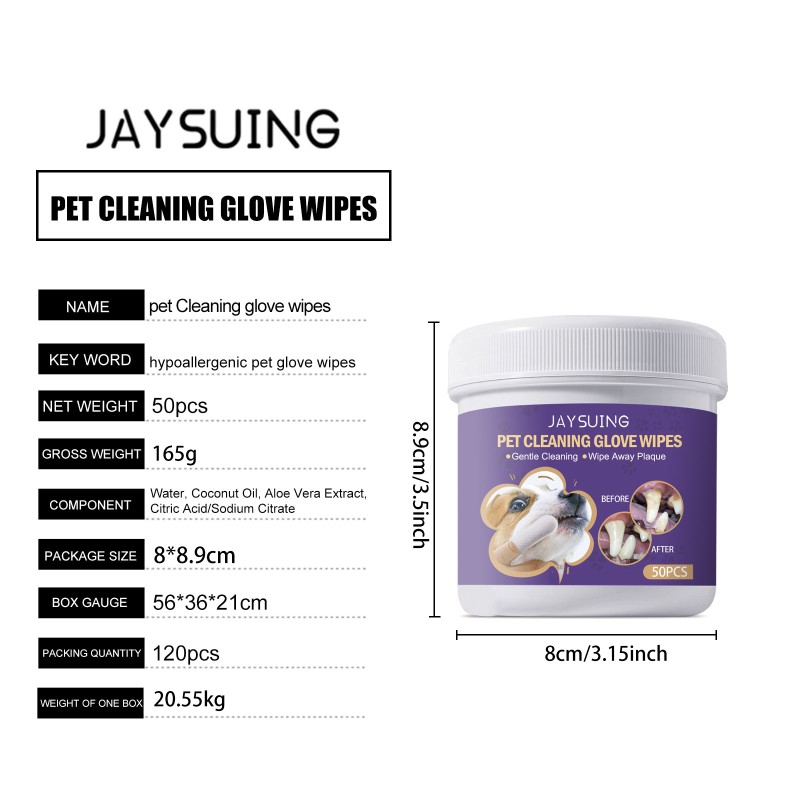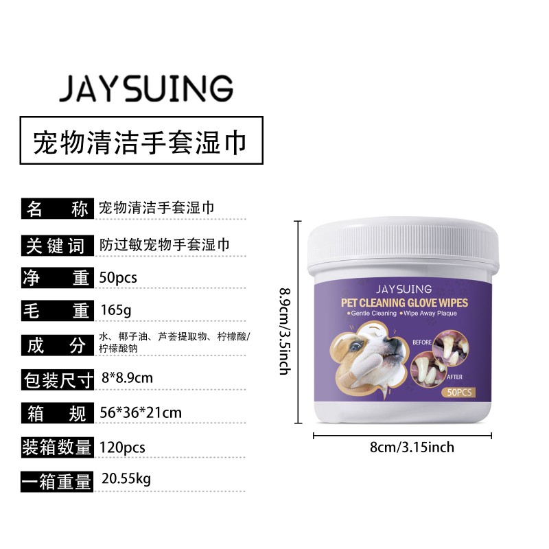 JAYSUING 宠物清洁手套湿巾 宠物牙龈护理温和清洁牙齿牙垢异味