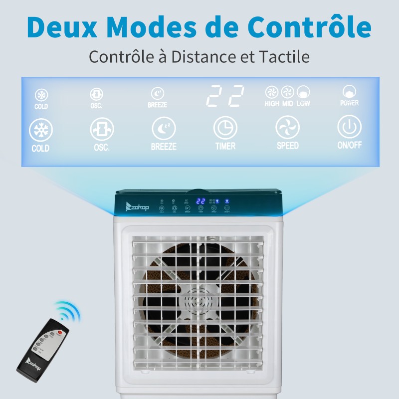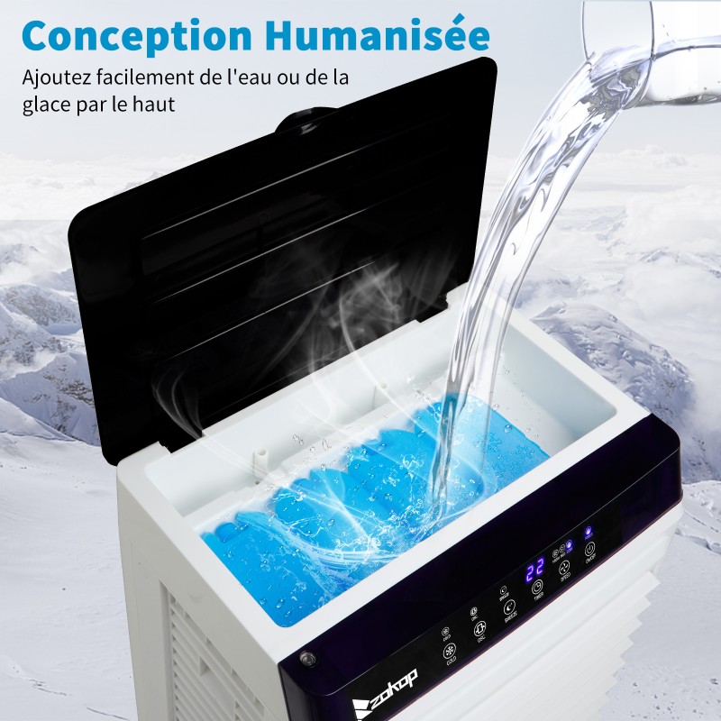 【三合一设备】这款便携式蒸发冷却器具有三种可能的冷却过程(空气/水/冰),不仅可以用作风扇,还可以降低空气温度并增加湿度。