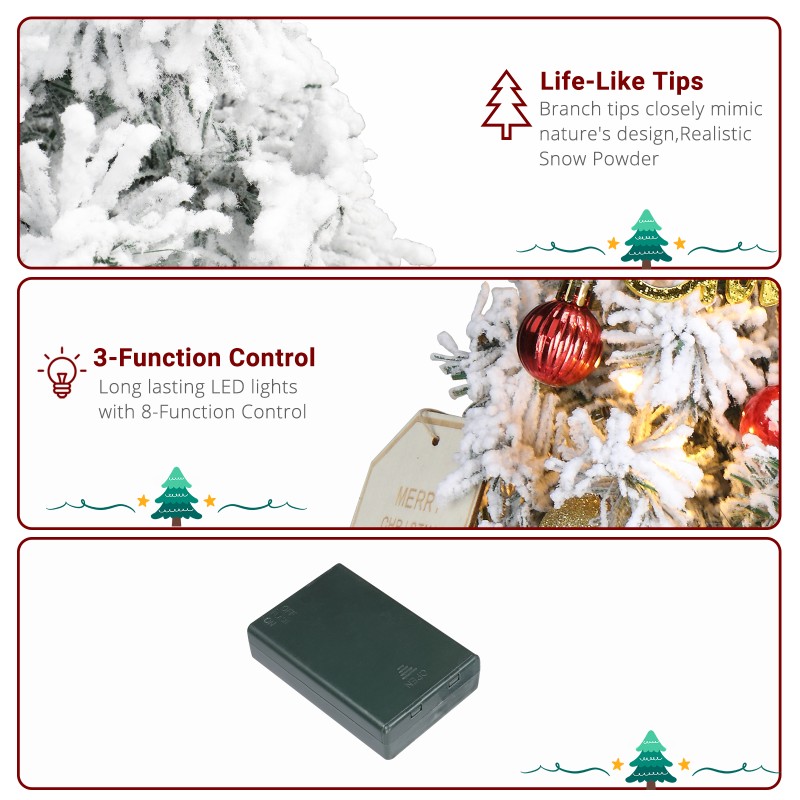 16in 绿色植绒 30灯 暖白3模式 电池盒控制 50枝头 带装饰配件 棉麻底座 PVC材质 圣诞树