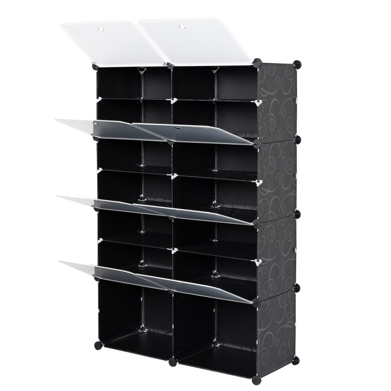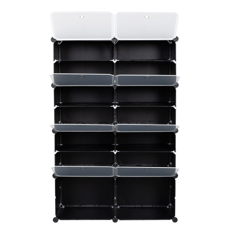 2排7层14格格子大小40*30cm 魔方片衣柜 塑料 钢丝 72*32*122cm 透明门黑色花纹柜体 N002 可自由组装 DIY风 法国